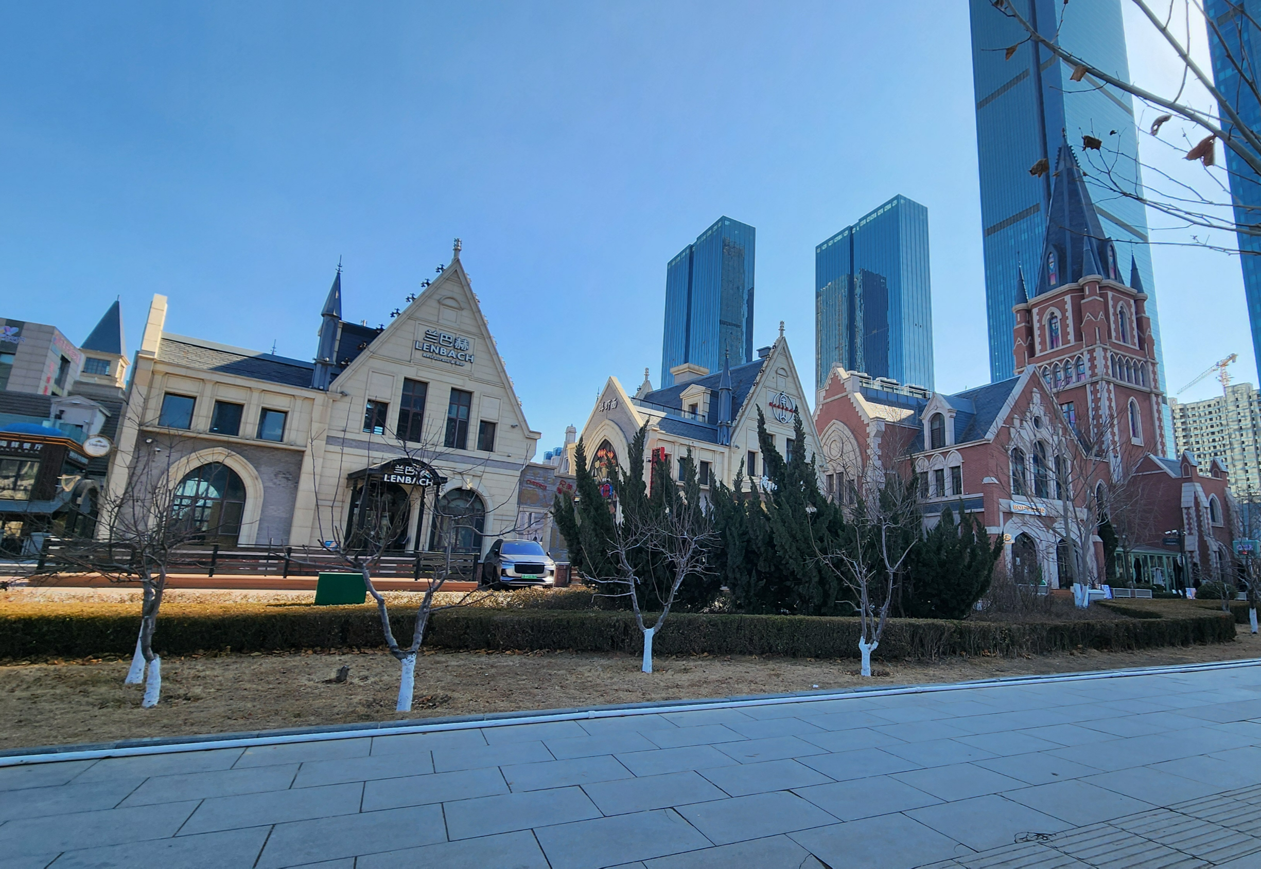 걸어서 갈 수 있는 거리에 다롄의 배네치아라고 불리는 동방수성이 있는데요. 10분 정도 도보 거리입니다.