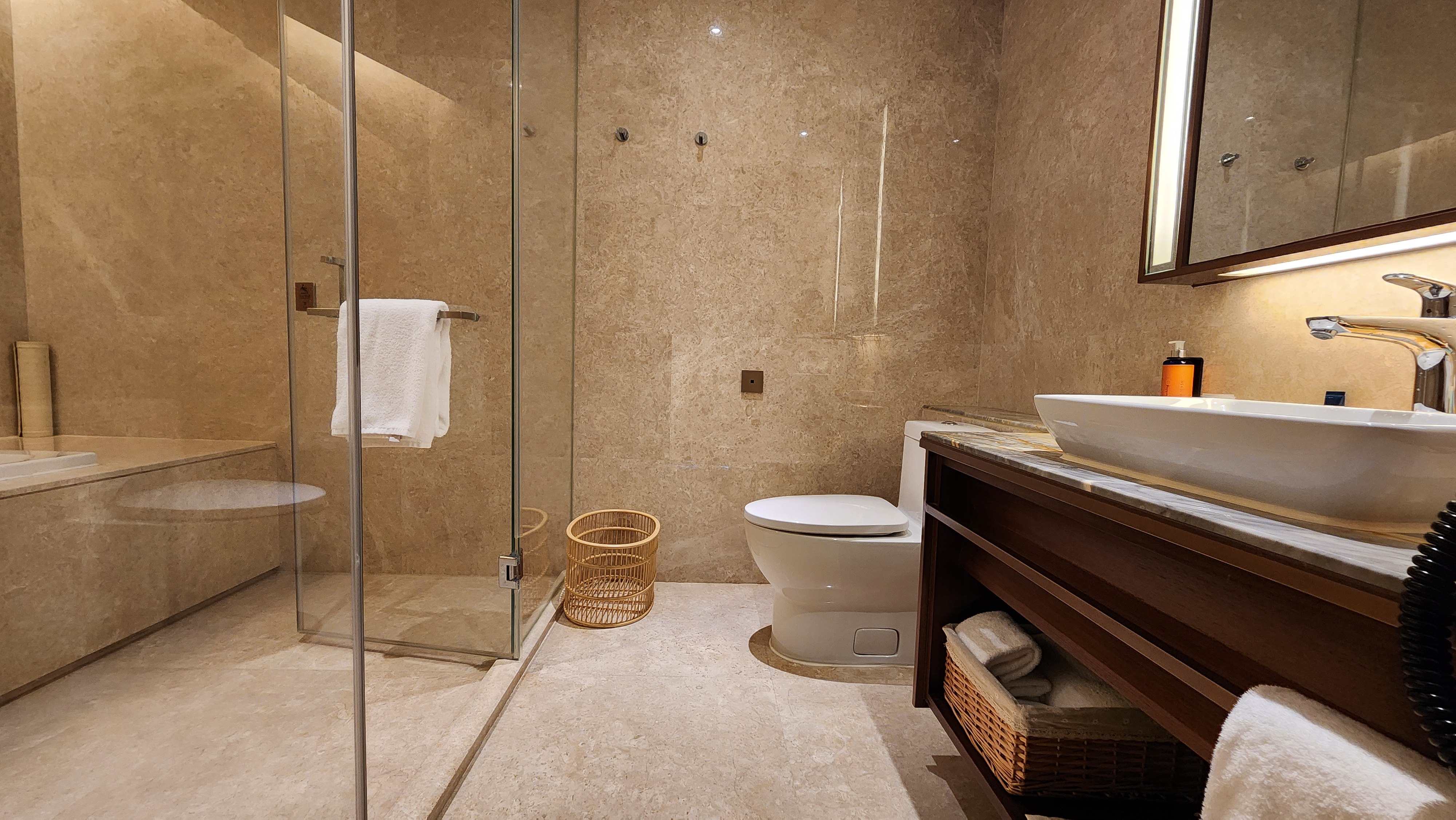 제일 좋았던 것은 욕실이었어요. 넓고, 깨끗하고, 온수가 콸콸 잘 나옵니다. 욕조에 물 받아놓고 반신욕 좋아요.